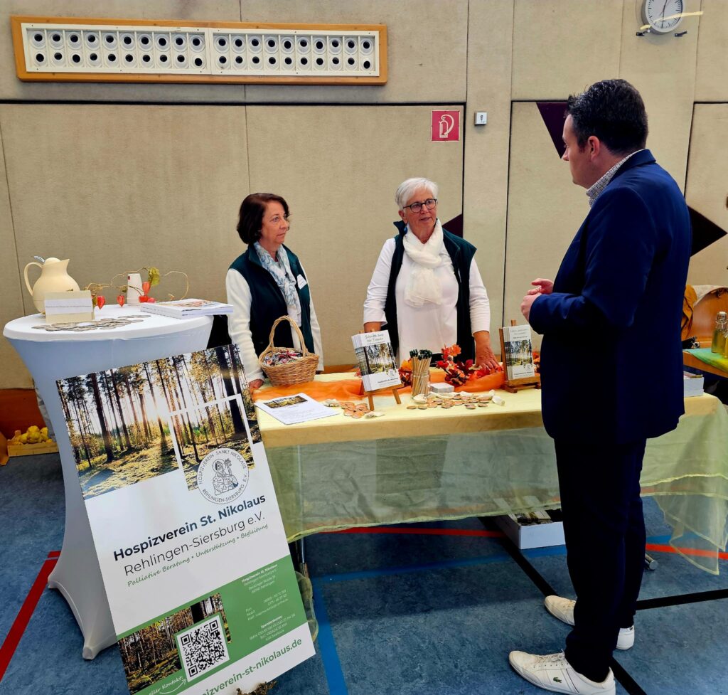 Unser Team stand den Besucherinnen und Besuchern für Fragen und Informationen zur Arbeit und zum Angebot des Hospizvereins zur Verfügung. Unter den Besuchern war auch Bürgermeister Joshua Pawlak.